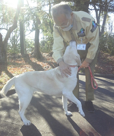 〈左写真〉そのあと仲良しのヒロちゃん(豆柴)のところに寄っておやつをもらって機嫌は直ったかな?