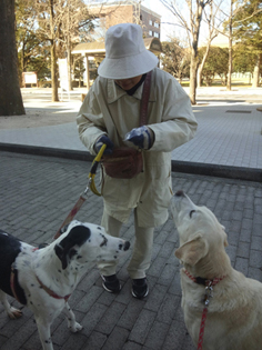 ひさしぶりにマリちゃん(ダルメシアン)にバッタリ。ダメだよ、おやつおねだりしちゃ・・・。